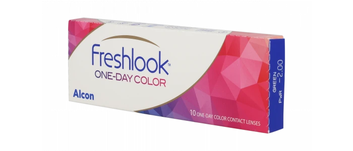 Vous souhaitez changer la couleur de vos yeux pour un jour ? Grâce aux lentilles de couleur Freshlook 1 Day Vert, changez la couleur de vos yeux en vert dès que vous le souhaitez !